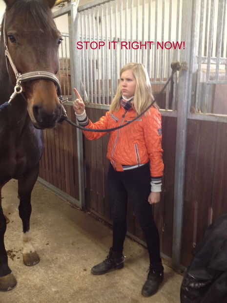 Si tu caballo no hace lo que supone que haga, como no encuentre todavía o deliberadamente intenta morder, mostrar el caballo que es no lo que debe hacer! Usar una voz enojada o tranquila como lenguaje corporal dominante al comunicarse con su caballo!