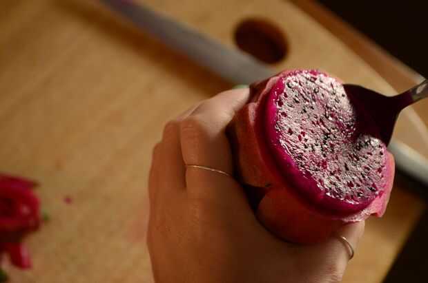 Para obtener bolas de pitahaya, simplemente utilice un melón baller (o helado cucharada, si la pitahaya es grande; o incluso una cuchara si eres lo suficientemente valiente) para hacer pequeñas bolas de la carne.