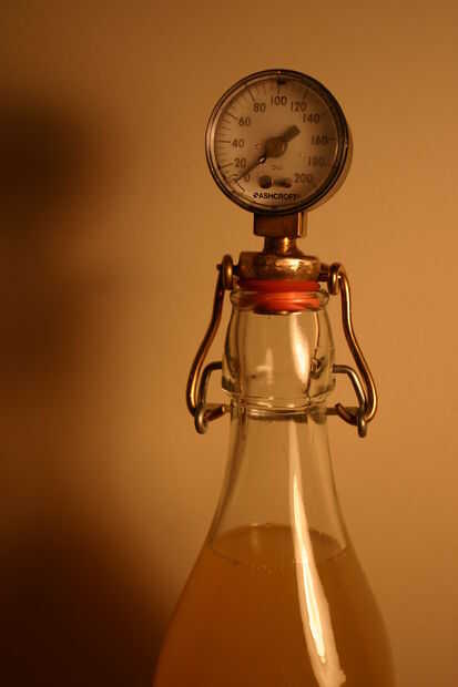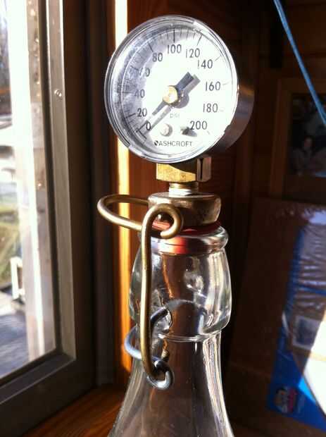 Mis lotes con esta botella han quedado genial, es tan agradable no tener que preocuparse por la botella de soplo! Yo generalmente café hasta un poco más de 20 PSI, por lo que el calibre es muy grueso mal escalado, pero fue el único que pude encontrar (tiene un máximo de 200 PSI!).