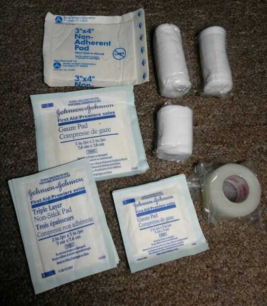 Intento usar pastillas no adherente y esparadrapo donde y cuando posible. Como tal, empacar el gambito de 2 X 2 tamaños a través de 5 X 5 y generalmente cuatro o cinco de cada uno, me da un montón de opciones para la cubierta y cambio de apósitos como sea necesario. Más de estos tendría si tenía el espacio, pero otra vez, no puede empaquetar todo.