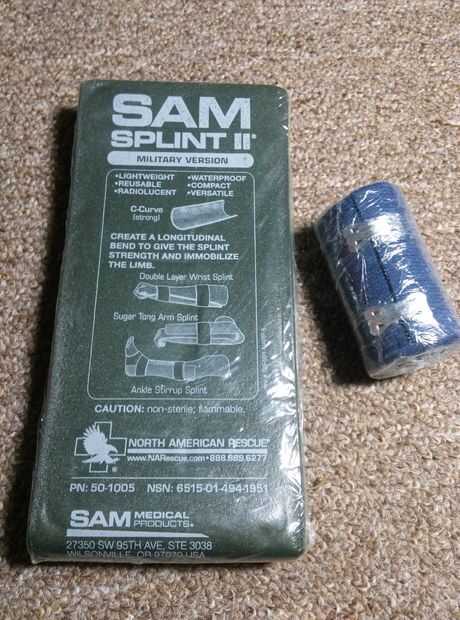 Así que, ¿qué vas que hacer, lleva a lo largo de cinco a diez libras de yeso de París y otros 100-150 yardas de rollo de gasa, es? Bueno, lo mejor que he encontrado es un Sam Splint. Para ésos no en el saber. Estas cosas son geniales! Vienen ya sea laminado o plana y en una variedad o colores para aquellos que buscan para mirar moda el fin del mundo. Básicamente se trata de una placa de metal maleable cubierta de espuma. Estas cosas son increíbles cuando se trata de la inmovilización en una prisa. Junto con el vendaje elástico también contenido en este kit dos forma un potente combo reutilizable que no quiero atreve salir de casa sin!