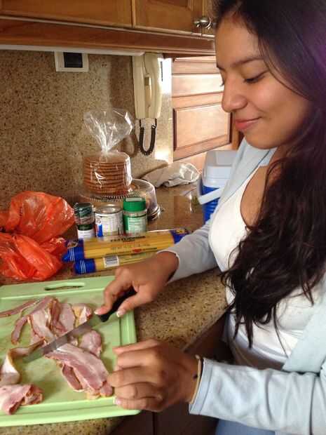 Corte el tocino en trozos pequeños.