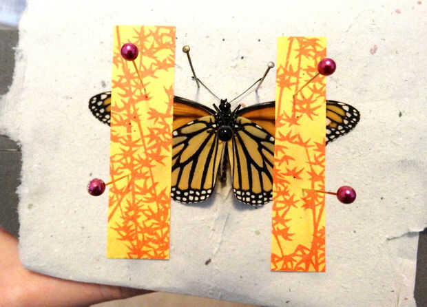 -Si tienes que improvisar, algunos ejemplares pueden cubrió con éxito por imposición sobre sus espaldas. He encontrado a este monarca en mi jardín mientras estaba todavía suave y quería prender rápidamente. Tendido de espaldas y asegurándose de que el papel tiras celebró que las alas al ras con la espuma me va a dar un agradable ala plano propagación para la exhibición. El ángulo puede ser sólo de técnicamente correcto, pero si eres un coleccionista ocasional puede trabajar.