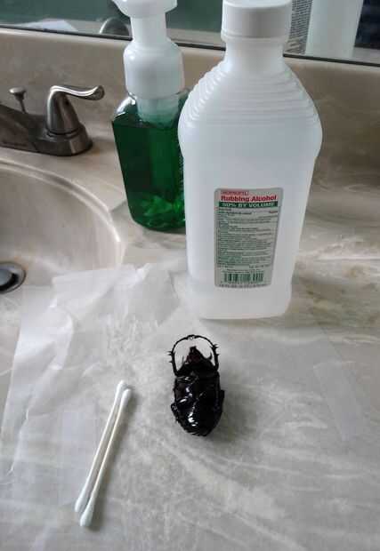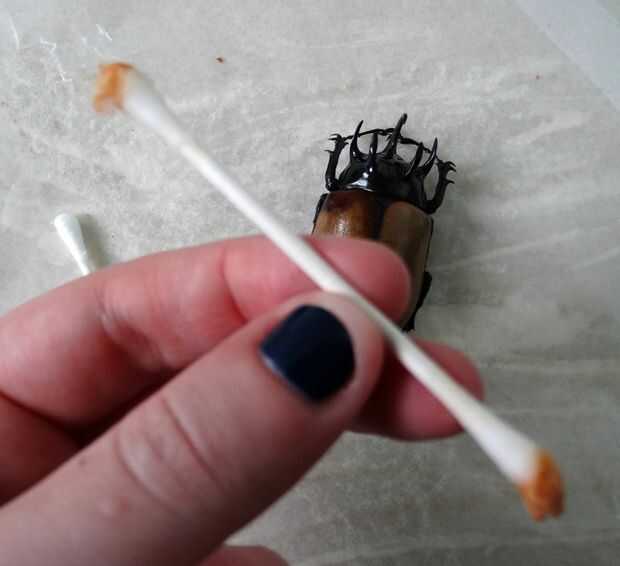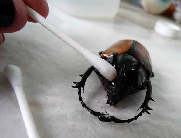 Para preparar la superficie para la resina y el dorado, queremos limpiar cualquier resto de suciedad y desechos del insecto.