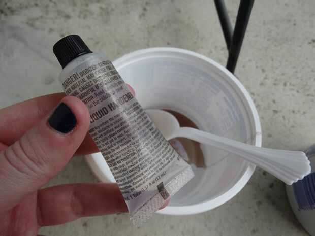 A bien ventilada el área de trabajo, preferentemente al aire libre , este material tiene los humos pesados y es permanente cuando se seca, así que esto no se debe hacer en la cocina o el bathroomeven aunque es un proyecto "pequeño".