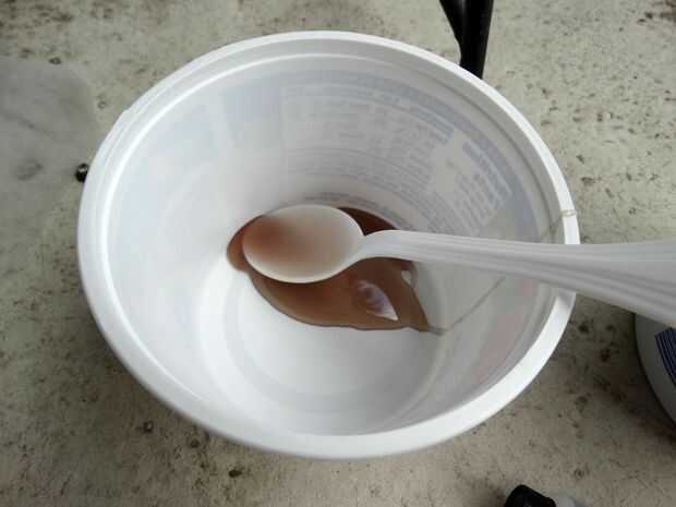 Mezclar los ingredientes con la cuchara de plástico. Ser consciente de que la cuchara, recipiente y pincel utilizas todos vamos a ser arruinados por la resina y son no lavables.