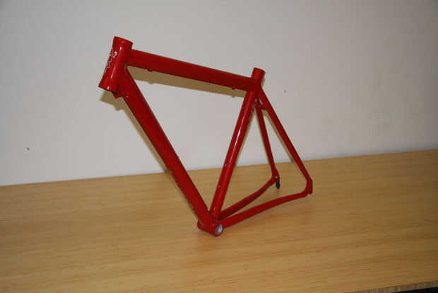 Esta es la parte fácil: tome el marco a los recubridores de polvo. Tuve gran suerte con recubrimiento de polvo de la costa oeste en South San Francisco. AJ en Costa del oeste fue capaz de simplemente limpiar la pintura de la superficie de las insignias antes del curado.