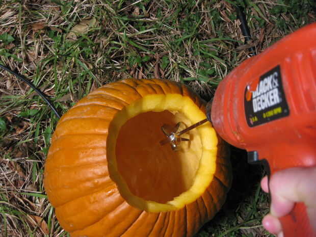 Fijar el canal de la calabaza a un taladro eléctrico. Punto el extremo de bola en la calabaza y encender el taladro. Aplique presión cuidadosamente a las paredes de la calabaza mientras que "dibujo" arboledas paralelo, alisar más delicadamente como vas. El canal de la calabaza se afeitar la superficie muy rápidamente, así que cuidado de no exagerar. Reducir la profundidad de la pared a no menos de una pulgada para conservar integridad como dejar tejido talla amplia. Siempre puede eliminar más adelante.