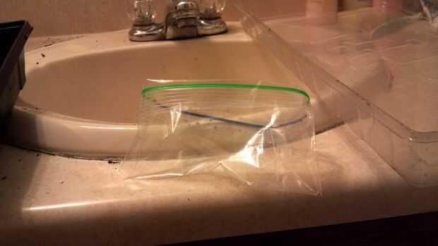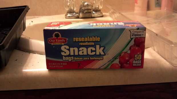 El primer paso es tomar la bolsa y doblar la cremallera sobre la parte exterior de la bolsa.   Esto asegura que la bolsa permanecerá abierta.