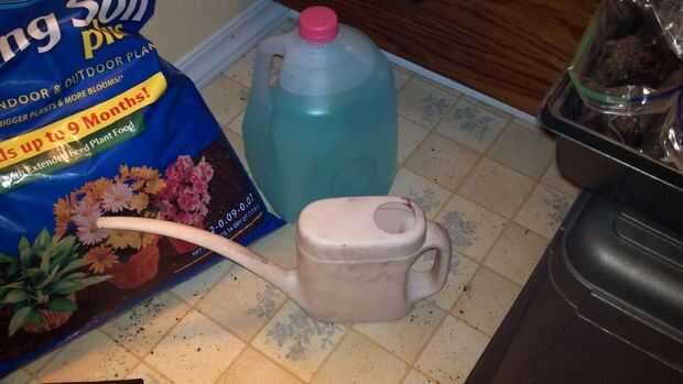 Mezclar su Miracle Grow en la jarra de un galón de agua pura.   Vierta en la jarra de riego.   Poner un par de onzas en cada bolsa, no sobre agua.   Un buen suelo absorbente se absorberá cualquier agua en la parte inferior.   Las bolsas mantienen el agua.  Es un ensayo lo mucho que añadir, sólo tienes que seguir tus instintos.