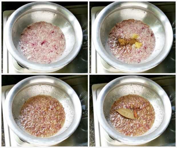 Después de un minuto añadir canela, el cardamomo y la hoja de laurel en la olla.