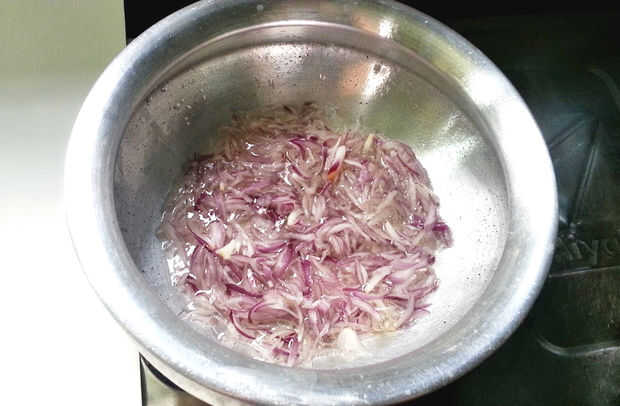 Agregue cebollas picadas en el aceite y freír de 3 a 4 minutos pero no dejes que las cebollas se vuelven marrones