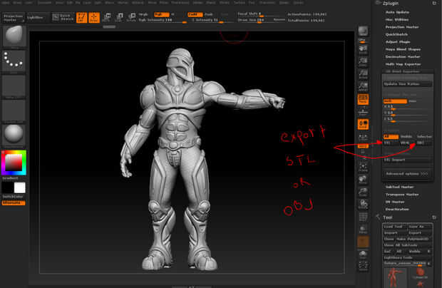 En el exportador 3d puede cambiar el tamaño de su modelo en pulgadas o milímetros. Las impresoras 3d más tienen allí poseen software donde usted puede ajustar el tamaño, así... pero si no lo hacen zbrush ofrece esta opción.