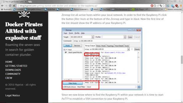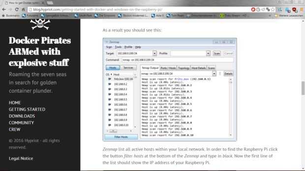 <--de aquí en adelante es un método para detectar su frambuesa Pi IP en su Lan con Zenmap copiado blog de Hypriot (fotos y texto por HypriotOS) http://blog.hypriot.com/Getting-Started-with-docke... -->