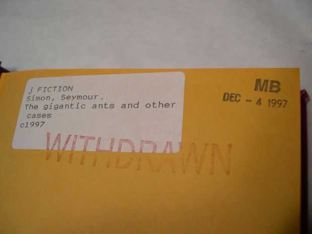 Probablemente puede deshacerse de la mayoría de la cinta y pegatinas en las cubiertas. Tinta sellos o escritura, aunque deberás alojarte. Y generalmente las etiquetas en las páginas de dentro no pueden extraerse sin arruinar la página. De vez en cuando encontrarás un libro con tarjetas de salida de vieja escuela y mangas! No te preocupes, aunque - que tipo de cosas hace un libro distintivo. Permite al lector conocer que este libro tiene historia. El lector puede incluso utilizarlos prestar el libro a los amigos.