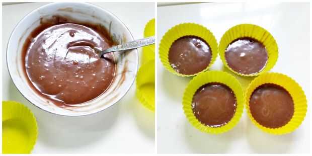 Llene las copas de la Magdalena con la masa. Llene la mitad de las copas.