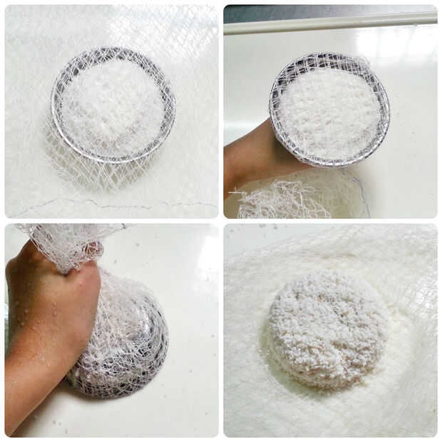 No retire el paño neto por debajo del molde de la torta de arroz.