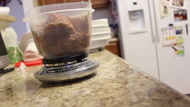 A continuación, usted querrá pesar los alimentos para conseguir un peso "húmedo". Coloque un recipiente sobre la escala y el cero a la escala. Luego poner los alimentos en el recipiente y lea el peso. Esto le dará el peso a Chile, no el envase. Anote este peso para más adelante. Ayuda a mantener el peso en una sola unidad, onzas o gramos. Cuando se utilizan libras y onzas, usted entra en confusión cuando se resta el peso seco.