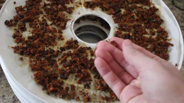 Después de unas 12 horas, la comida debe estar completamente desprovista de agua. Apague el deshidratador y deje que su alimento se enfríe completamente.