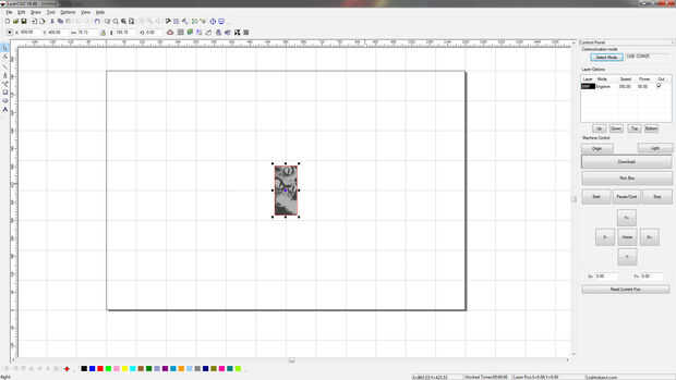 Ahora puede utilizar la herramienta Rectángulo para hacer una caja alrededor del arte y el poder para en lo que usted necesita utilizar para cortar a través el material para darle un buen corte. Desde aquí es exactamente igual que cualquier otro proyecto de láser. Descargar el archivo para el láser, ejecutar una caja para alinear el material, inicio del golpe y disfrutar. Este archivo con estos ajustes terminará con una pieza que mide aproximadamente 3,5 "x 7" y llevará unos 20 minutos más o menos para correr. ¡ Disfrute!