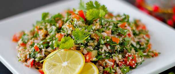 Esta ensalada es conocida como ensalada israelí moderno que es tradicionalmente de finamente había picado pepino, tomate, perejil con un tahini y un aderezo de limón. Usted puede también hacer ricos en fibra mediante la adición de semillas de lino de tierra. Usted puede darle una textura agradable mediante la adición de calabacín y zanahorias ralladas. También puede aumentar el contenido de proteínas mediante la adición de semillas de girasol orgánico crudo cucharada 2-3. Esta ensalada lleva menos de 10 minutos para la preparación.
