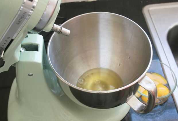 Batir claras de huevo en lo alto hasta que esté espesa.