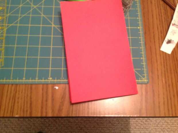 Corte una delgada línea alrededor de cada lado del papel. Luego tomar el papel stock de tarjeta roja y doblar por la mitad. Pegue el pedazo blanco de papel en la cartulina. Usted debe ser capaz de ver un contorno rojo alrededor del libro blanco. Si no, cortar más alrededor del exterior del libro blanco