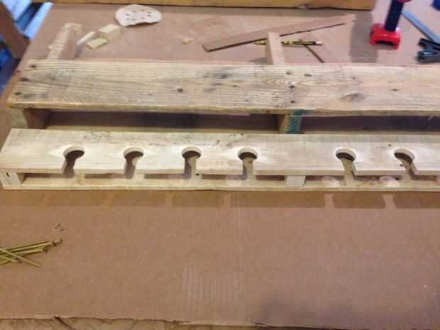 -Una vez que tengas todos los agujeros perforados, ahora es momento de comenzar a afinar los agujeros -Utilice una sierra de calar para cortar la tabla a cada agujero para crear un camino para la Copa de vino entrar en su lugar