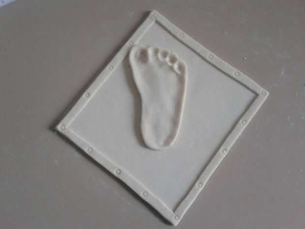 -Base para impresión del pie está listo. Coloqué mi pie hijo grabado en el centro del marco.