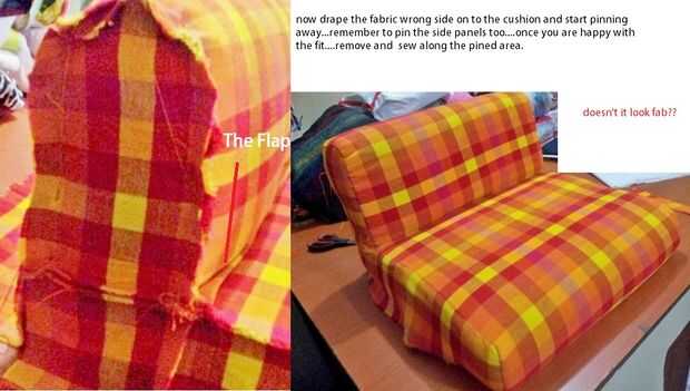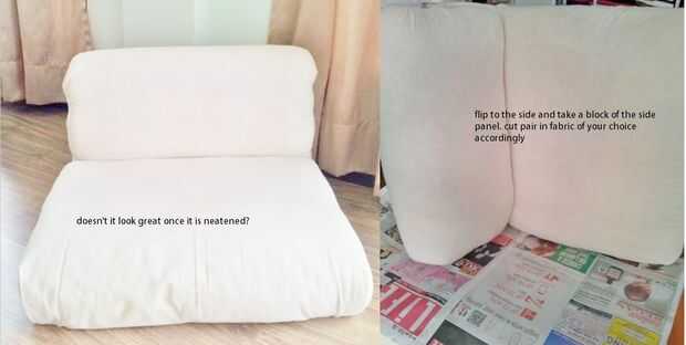 tapa que su silla al lado y dibujar un bloque de los lados... corta la tela según la forma.