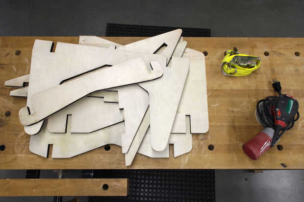 • Utilicé un cortador Metabeam del Laser para cortar las piezas, ya que es rápido y tenemos una. Un Shopbot haría trabajo de esto, y no tiene ninguna marca de quemadura administrar más tarde.