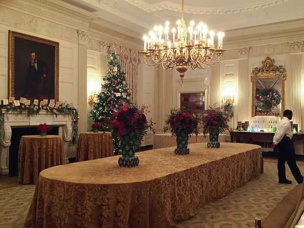 2. el comedor de estado es también casero a la increíblemente detallada y bellamente diseñada casa blanca casa de jengibre, una tradición popular de vacaciones de casa blanca Iniciado por primera dama Pat Nixon en 1972.
