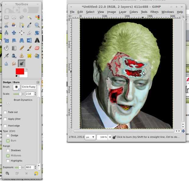 Para dar cierta profundidad a la herida, he usado el Filtro de realce en la selección. Esta es otra herramienta que te permite previsualizar los resultados antes de comprometerse así que ajustar en consecuencia. Si no eres realmente artística, recomiendo jugar con opciones hasta que se 've bien'. Incluso si no tienes un ojo artístico, todavía será capaz de decir si algo no se ve muy bien. Y poder previsualizar cambios en los umbrales, los colores y los niveles como usted cambiarlos es valioso, mucho menos tiempo también.