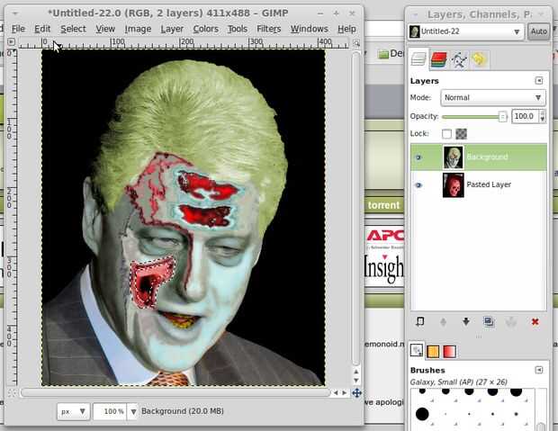 Primero me aseguré que estaba en la capa de Slick, seleccionado el agujero [el espacio transparente, cortar], fui a las opciones de selección y se convirtió la selección en una frontera. Dependiendo de la resolución, la anchura de la franja de selección variará. Puesto que la carne en la mejilla es delgadita, algo hice fina selección de bordes. Y por supuesto emplumada la selección al mínimo de 1 píxel.
