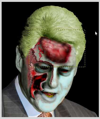 Utiliza el borrador o Selección, pluma o eliminar, quité parte de frente de Slick. A diferencia de la cavidad anterior, ésta contiene 'algo'. Ardiente el perímetro del agujero se añaden profundidad. Entonces mover a la capa de cráneo y quemado alrededor de los bordes de la abertura, escondió a algunos de los defectos y afiladas es un tad.