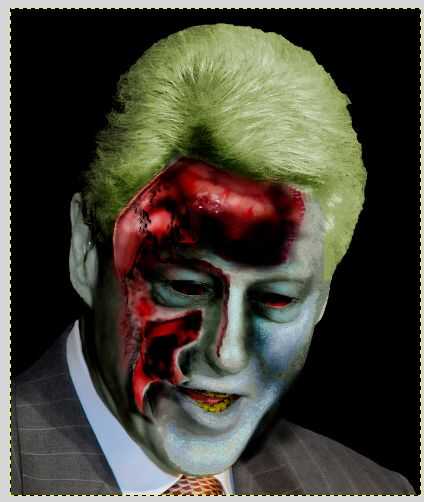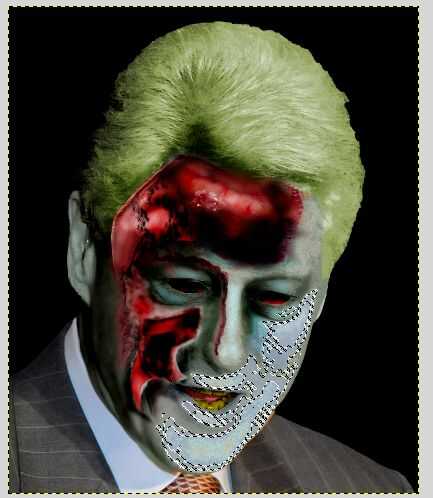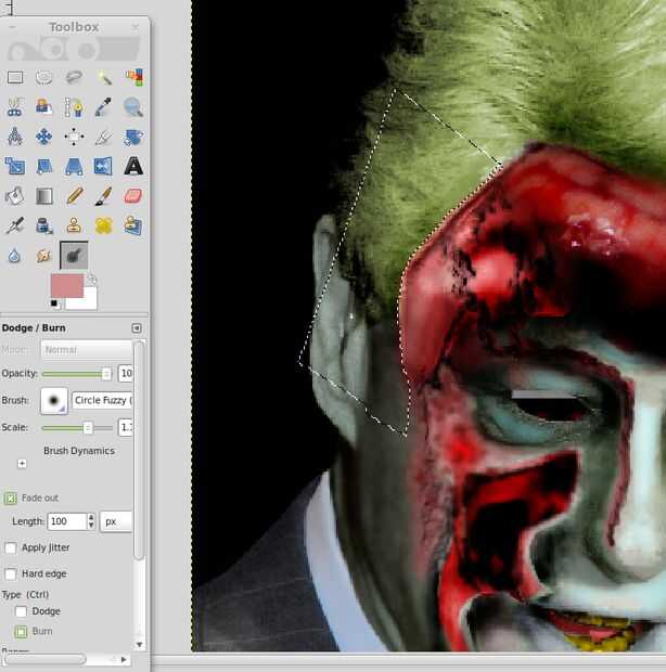 Estereotípicas zombies han concaved características, por lo que quité un poco de la mejilla izquierda o papada con quemar.