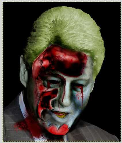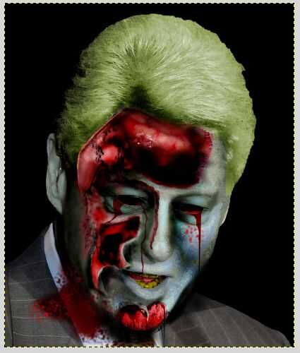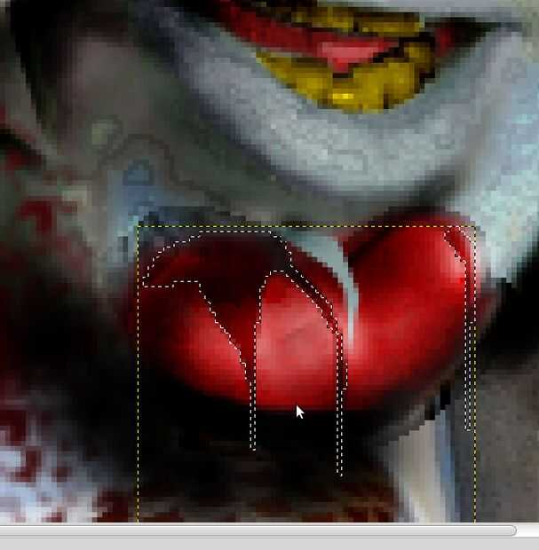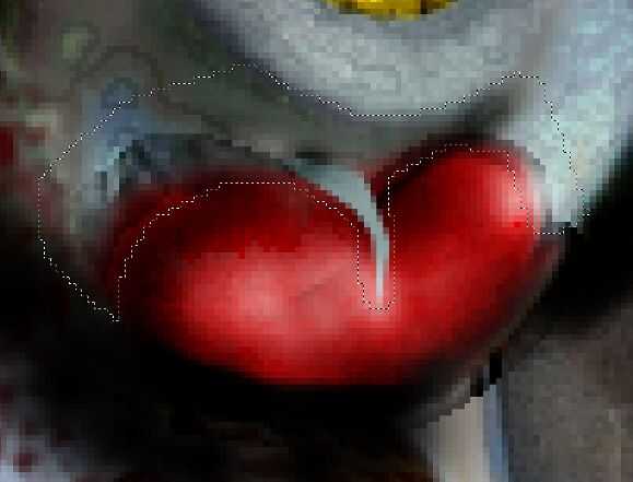 Me Freehanded otra selección de sangre en la barbilla, Colorized una tonalidad roja y reduce el brillo.