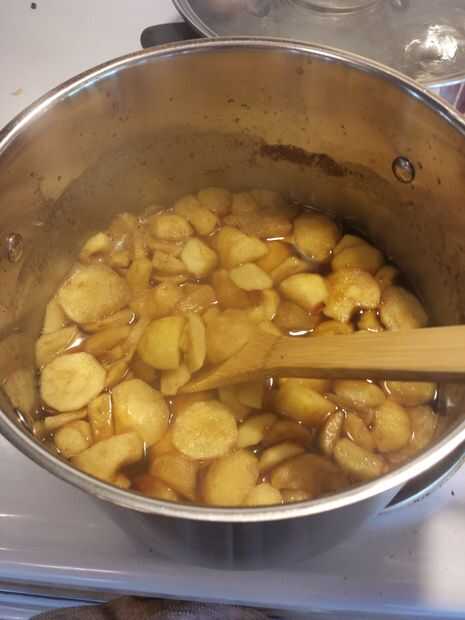 Tirar las manzanas en el zumo de manzana hirviendo! Esto hace dos cosas: