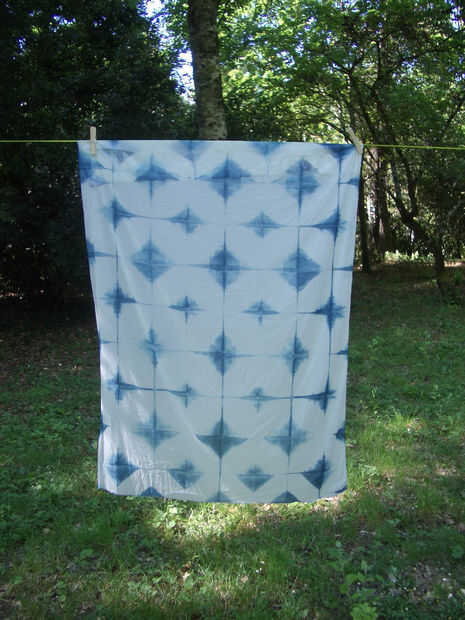 Itajime es un método Japon de crear patrones en teñido, algo similar a Tie-Dye. Pero en vez de usar cadena o hilo para comprimir la tela en lugares para evitar que el licor del tinte de objetos penetrantes, sólidos llamado resiste se sujeta en ella. Primero la tela se dobla varias veces, resultando en audaces patrones geométricos.