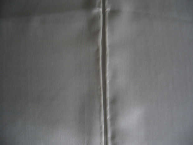 Plancha tu tela otra vez para que sea perfectamente liso, luego doblar lo largo borde a borde largo, derecho contra derecho. Pliegue de la línea de doblez con cuidado con el hierro, manteniendo los bordes laterales exactamente a como lo hace. La precisión es clave.