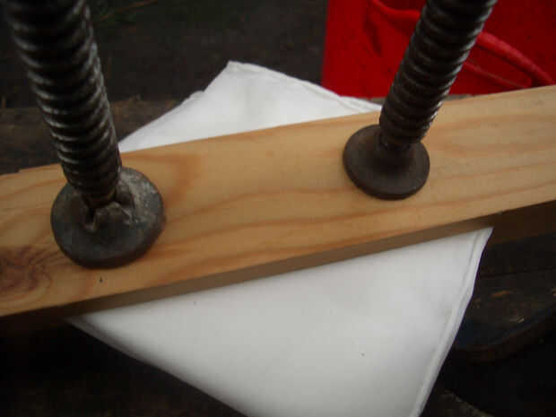 Posición uno resistir debajo el paquete en la posición que ha planeado para su diseño, luego coloque el otro en la parte superior, alineado perfectamente con el primero de ellos. Apretarlas juntas para agarrar el paquete firmemente entre ellos y sujetarlos así con una pinza a cada lado, dentro de los bordes del haz. (Si coloca las pinzas fuera el paquete entonces se doblará el resiste y tinte puede escurrirse debajo de ellos. Puede incluso romperse.) Atornille las abrazaderas cerradas tan ajustadamente como sea posible.