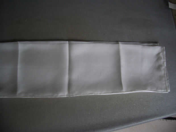 Una vez que tienes todos en una dirección, entonces necesitará hierro en pliegues en la otra dirección. Hacerlo como antes, pero trabajando en conjunto dobla la tira de tela. En otras palabras, doblar la tira en medio extremo a extremo y pliegue el pliegue medio, abrir hacia fuera y pliegue las líneas de ¼, etc, recordando respetar los valles y montañas.