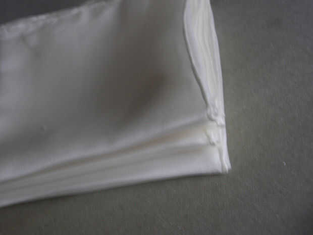 El paquete se hace doblando la tela como un acordeón, empezando en un borde largo y luego a través de a la otra, utilizando los pliegues planchados en como guía. Es importante ser preciso, colocando el primer borde largo precisamente en el primer pliegue, luego dobla a la tela en sí mismo a lo largo de ese pliegue y así sucesivamente. Puede que necesite alguien para ayudarle si usted está trabajando sobre un pedazo grande de tela.