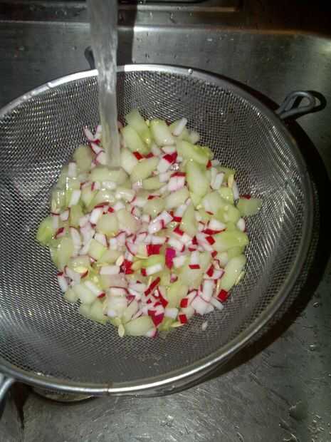 He azotado hasta una refrescante ensalada de verano refrigerado que visualmente llama la atención en la luz del día y (más impresionante) en la luz ultravioleta. Y aunque la chapa hace que se vea complicado, los elementos son increíblemente simples.