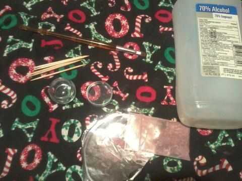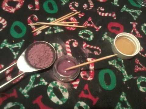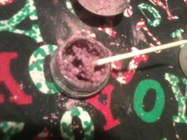 Comenzar con una pequeña cantidad de polvo en su bote, lata, taza, placa, etc. y añadir una o dos gotas del alcohol de frotamiento. Aquí es donde el frasco gotero u ojo vendría práctico, pero sólo vierta un poco de alcohol en la tapa de la botella. Revuelva bien con un palillo y añadir un poco más de polvo. Si está demasiado seca, añadir otra gota o dos de alcohol y continúe batiendo.