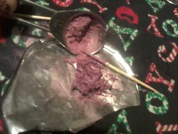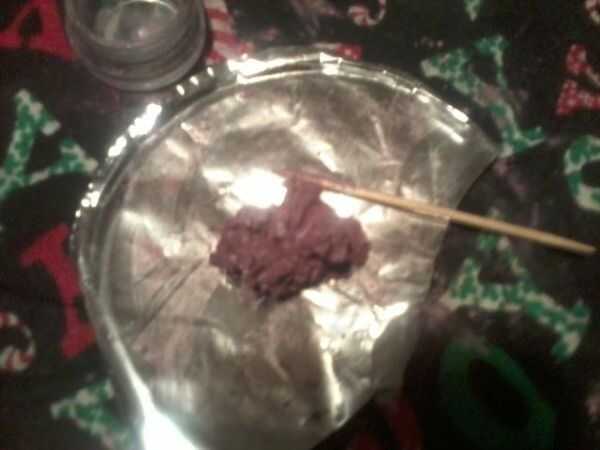 Después de recibir un poco de sombra mezclada, sea pasta que tipo de se asemeja a un lápiz labial con grumos, especie de melty,. Esta es la consistencia que desee. Sólo asegúrese de que todo el polvo está húmedo y no es reales terrones. Usted puede mantener mezcla en la olla, si eso es lo que usas, pero pasar a mi pieza de papel de aluminio y acabado de mezcla hay.