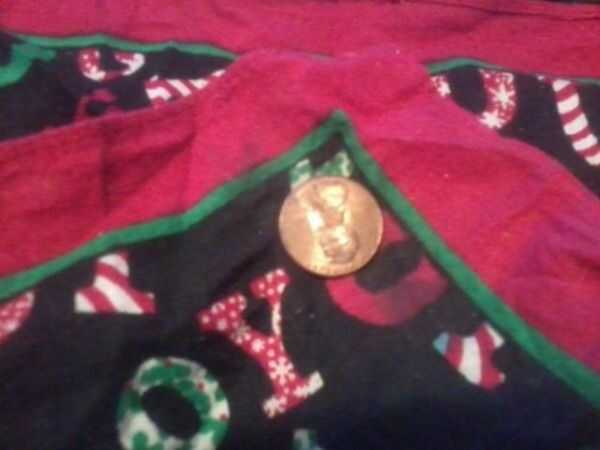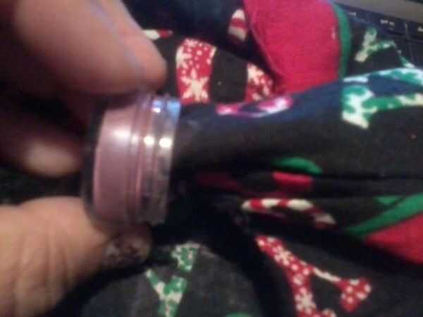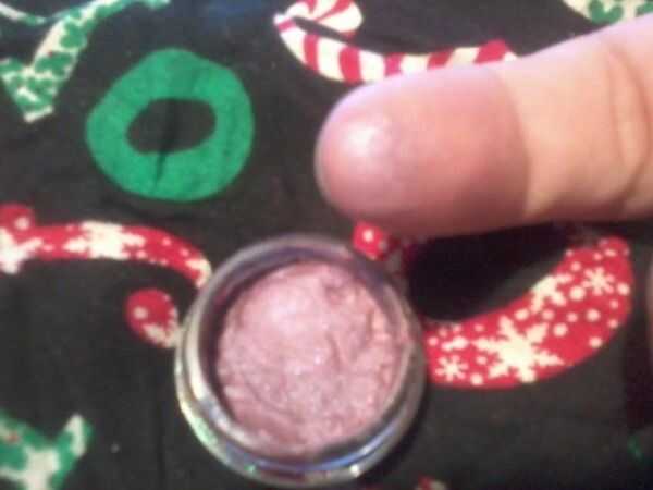 Después de que usted gire su tela alrededor de su prensa de moneda su moneda firmemente contra tu sombra de ojos. Estoy usando un centavo porque es lo más cercano que puedo llegar a caber en mi pote de sombra de ojos. La tela mecha a la humedad adicional y le da a la superficie una textura de tejido bastante. Puede que necesite moverse su moneda en su tela.