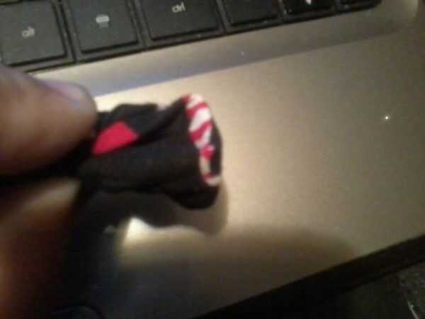 Ahora, coge la moneda y pliegan su paño y retorcerlo. Estoy usando mi pañuelo de antes pero puede usar a cualquier tela de algodón siempre y cuando no te importa lo que manchado aunque se lavan más sombras.
