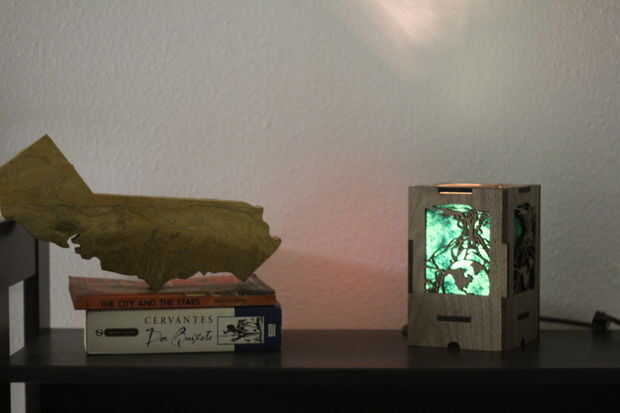 Lámpara de madera del compartimiento secreto