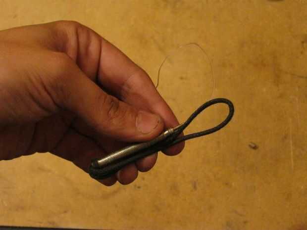 Cuando pones el tirón de la cremallera en su cremallera, tendrás el cable del lazo sobre la válvula, así que usted querrá asegurarse de que el bucle borra la válvula completamente. En mi caso, tuve más de lo que necesitaba, así que había recortado hasta que fue justo.